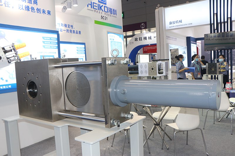 PLA降解材料用雙柱換網器需要通過嚴格控制主體和柱塞間間隙,通過剛性材料面-面密封可以實現(xiàn)優(yōu)異密封性和耐久性;PLA雙柱換網器流道結構采用雙通道橢圓形式設計,可實現(xiàn)大過濾面積,具有更高抗壓能力;正常生產時雙通道同時過濾更換濾網時一個柱塞推出主體后更換濾網經引料排氣后,馬上退回工作位置,然后對另外一個柱塞進行交替更換,解決了換網過程中引入空氣造成的生產中斷或中空粒子。